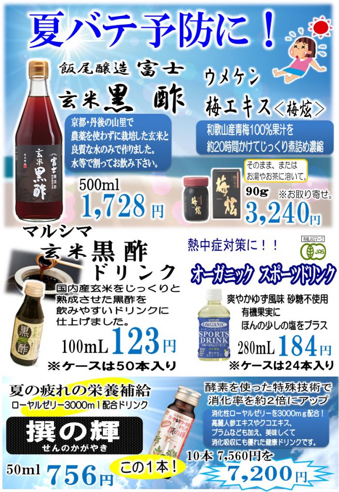 東大阪市布施で有機野菜や無添加商品を取り扱っている、自然食品の店 あんじゅ布施 > お店の情報 > 今月のあんじゅ通信 > 2020 7月夏バテ黒酢