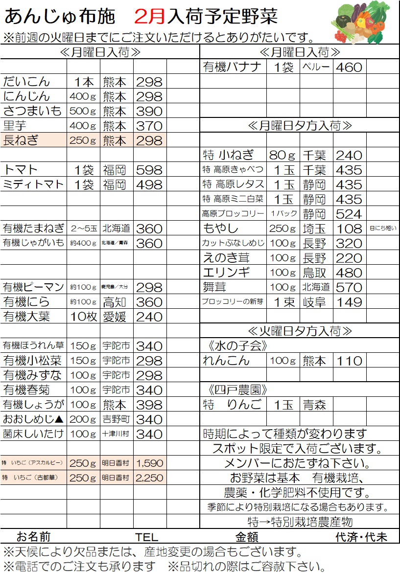 2026お野菜入荷表 2月
